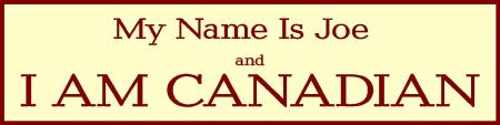 Popular Canadian saying, My Name is Joe and I am Canadian 6" x 24"